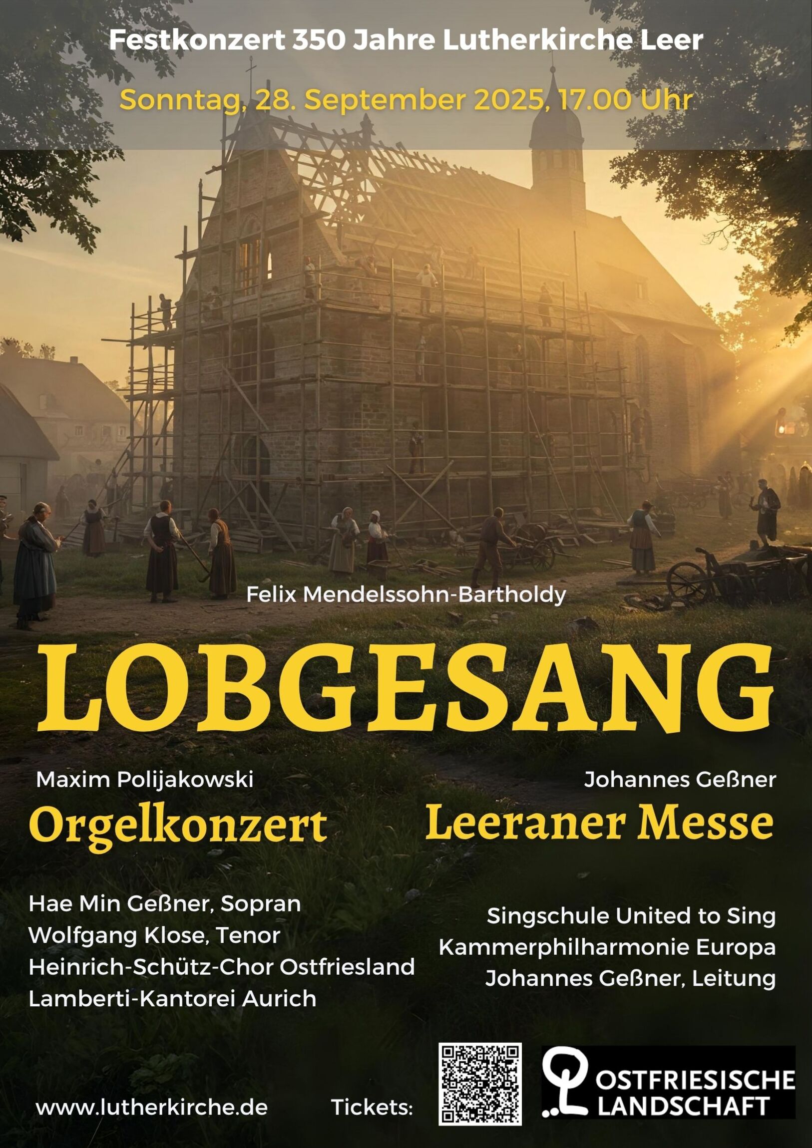 Johannes Geßner komponierte 2025 aus Anlass des 350. Geburtstages der Lutherkirche eine „Leeraner Messe“, die mit Orchester und Chor entlang der Form eines lutherischen Gottesdienstes ein Stück echter ostfriesische Kirchenmusikgeschichte sein wird. Festlich, tiefsinnig und erfrischend modern! Die einzelnen Sätze tragen dabei als Überschriften Bilder des bekannten Leeraner Künstlers Hermann Buß (z.B. die Nordseebibel, Altar der Inselkirche Norderney); als Inspirationsquelle und lokalen Bezug zu Ostfriesland.